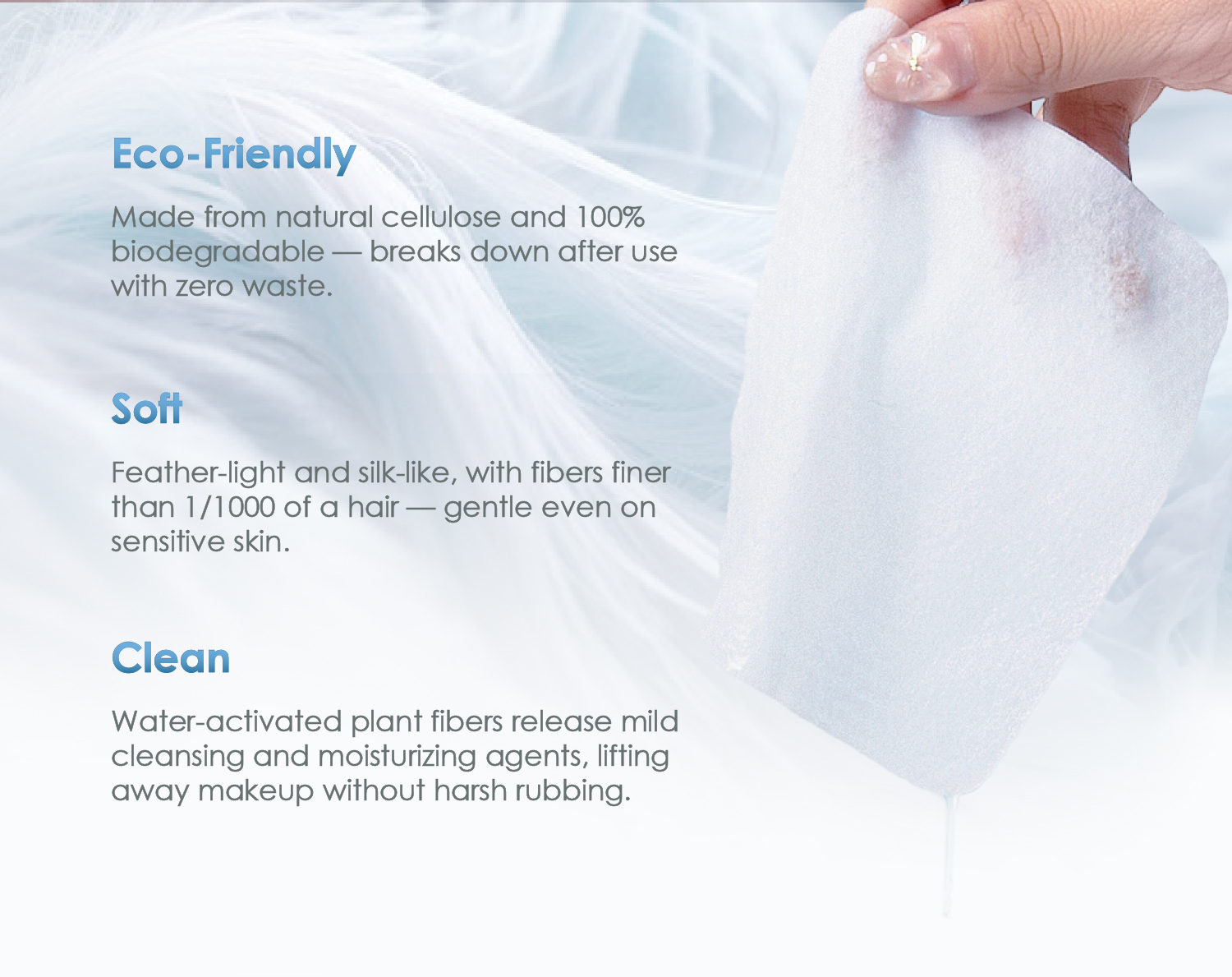 Rooted in eco-conscious values, our wipes deliver a pure, gentle, and effective cleansing experience.