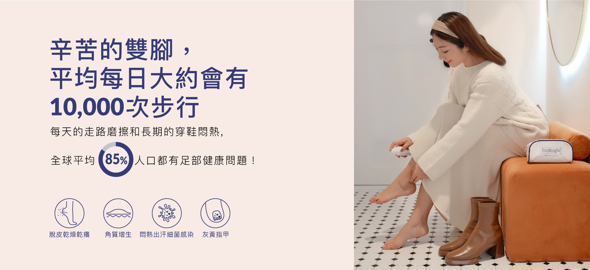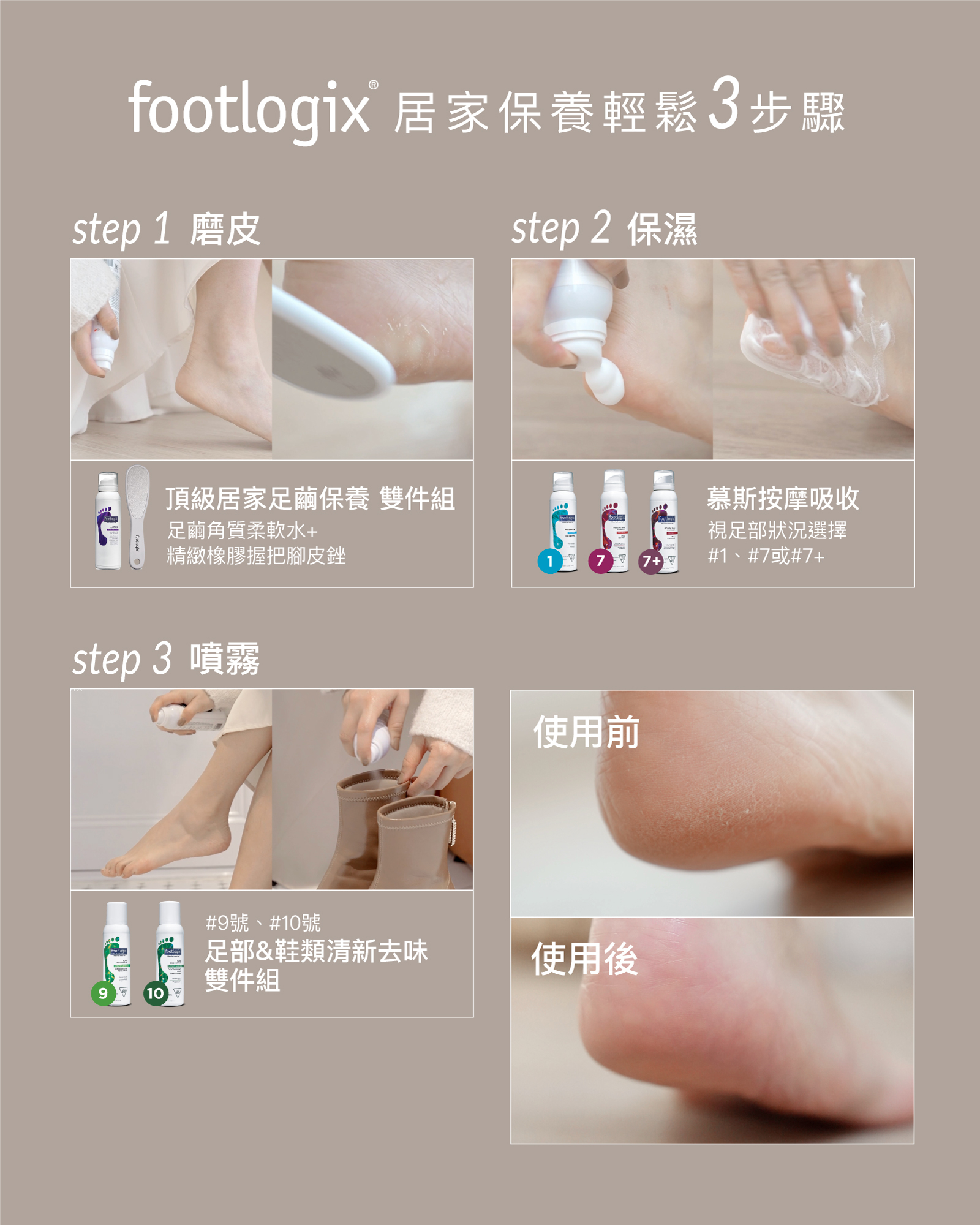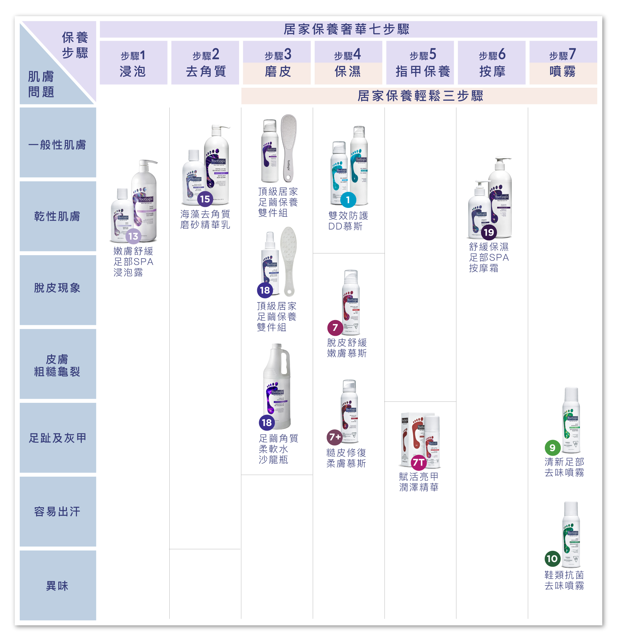 從乾燥現象到粗糙脫皮乾裂乃至指甲等相關問題,Footlogix美妝品皆能迅速有效改善。
