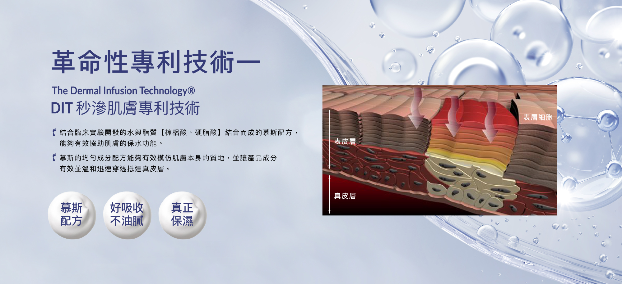 以專利D.I.T.鏈接深層秒滲肌膚科技,將醫美級活性成份的足妝配方融入超柔細乾爽慕斯,