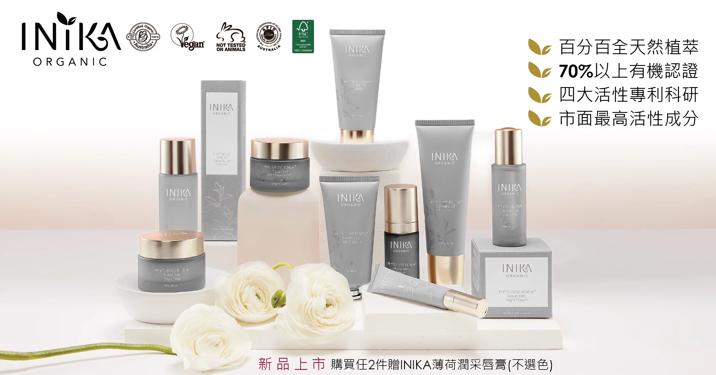 INIKA Organic 全部系列的產品都是 100% 天然配方,並通過全球最嚴格的認證認可,是健康化妝品中最符合道德和無罪的選擇。產品不經動物測試 (澳洲無動物測試認證、善待動物組織認證),並且不含來源自動物的成分 (英國素食主義者認證),以及無毒素和酒精 (清真認證),同時獲得澳洲有機食品認證和意大利有機化妝品認證。產品也不含損害成分、刺激性化學品或化學合成物。