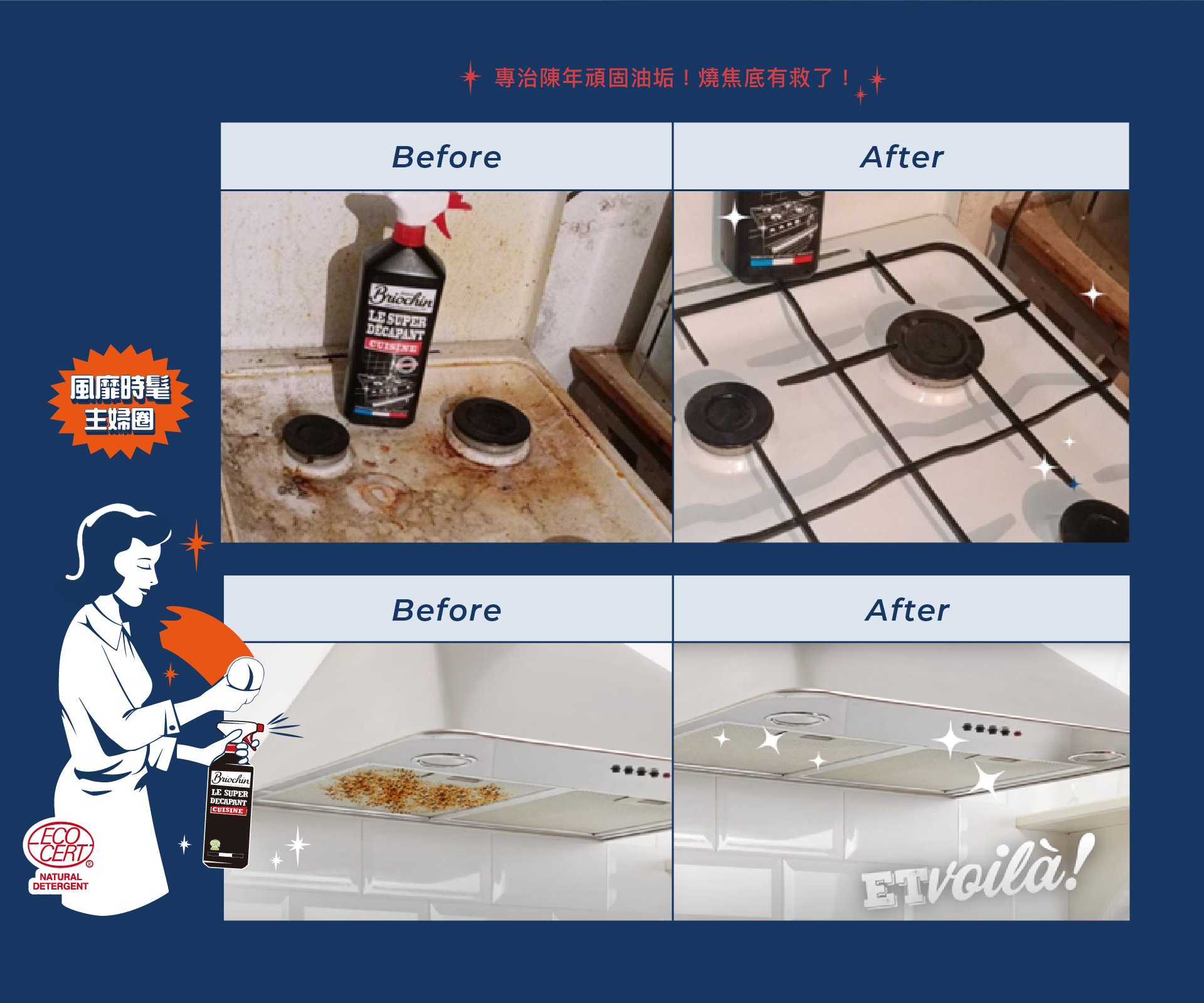 👉廚房重污強效清潔劑:專門對付烘烤污漬及陳年頑強污垢,適用於烤箱、爐盤、爐具、抽油煙機等沈積油污、燒焦底等。