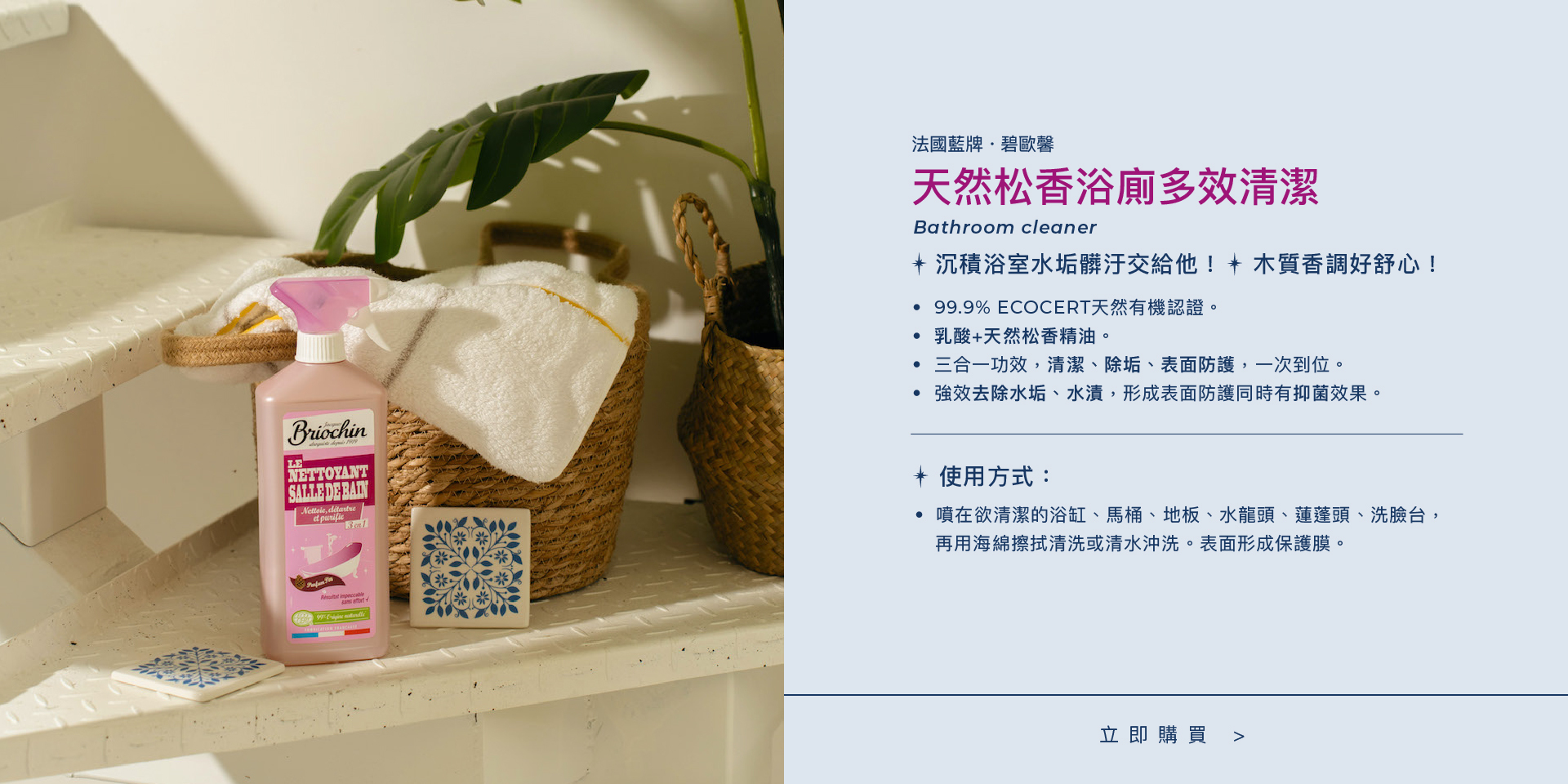 Q3. 浴室專用-覆盆子泡沫除垢劑與天然松香浴廁多效清潔劑,兩者清潔液該如何選擇? ▾