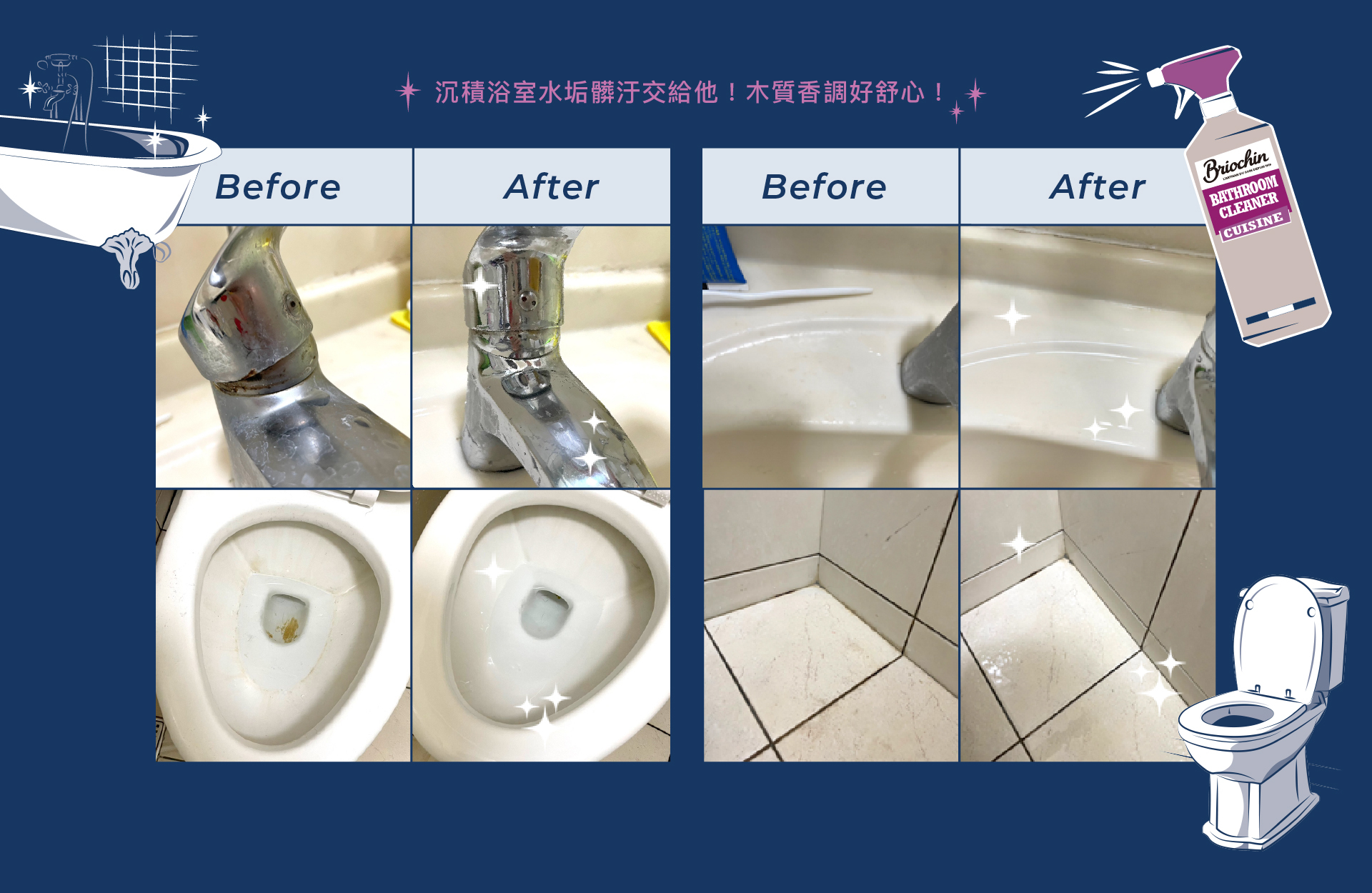 👉天然松香浴廁多效清潔劑:專業浴室清潔、除垢、表面防護三效合一,適用於洗手台、浴缸、水龍頭、蓮蓬頭、馬桶蓋等,添加乳酸成分,更能針對衛浴磁磚地板、水漬髒污,縫隙卡垢等形成保護膜,減少水垢、皂垢滋生。