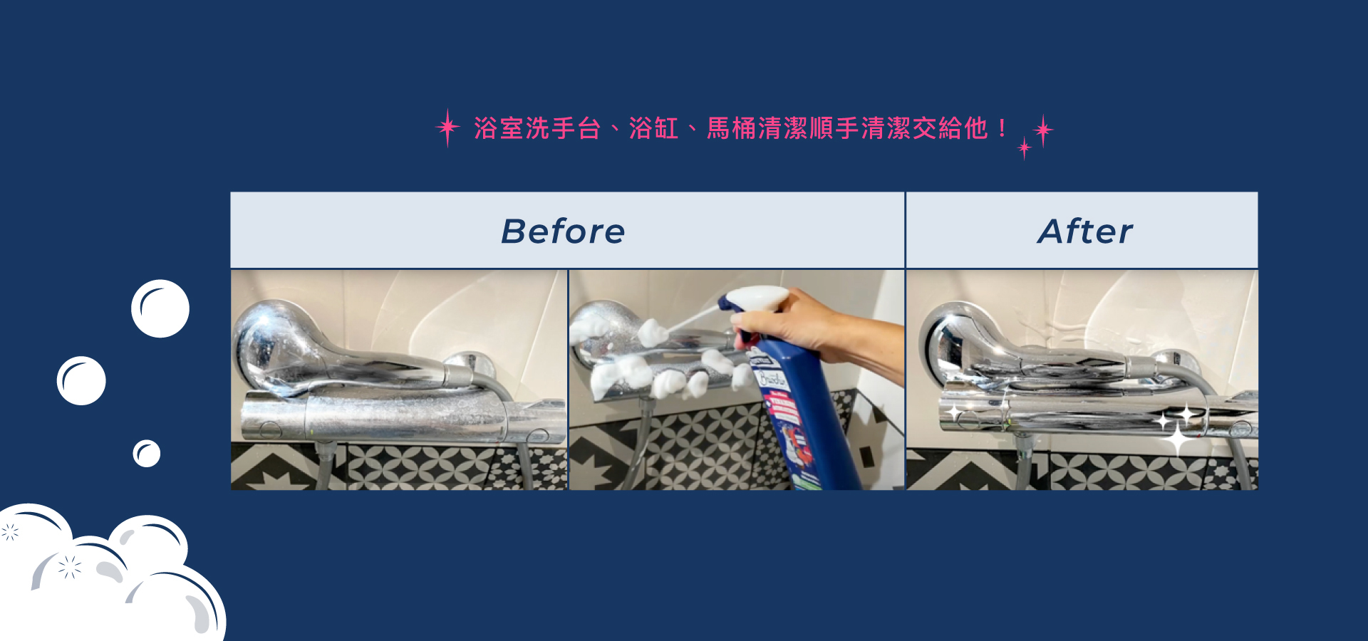 適用於洗手台、浴缸、水龍頭、蓮蓬頭、馬桶蓋等清潔好方便。