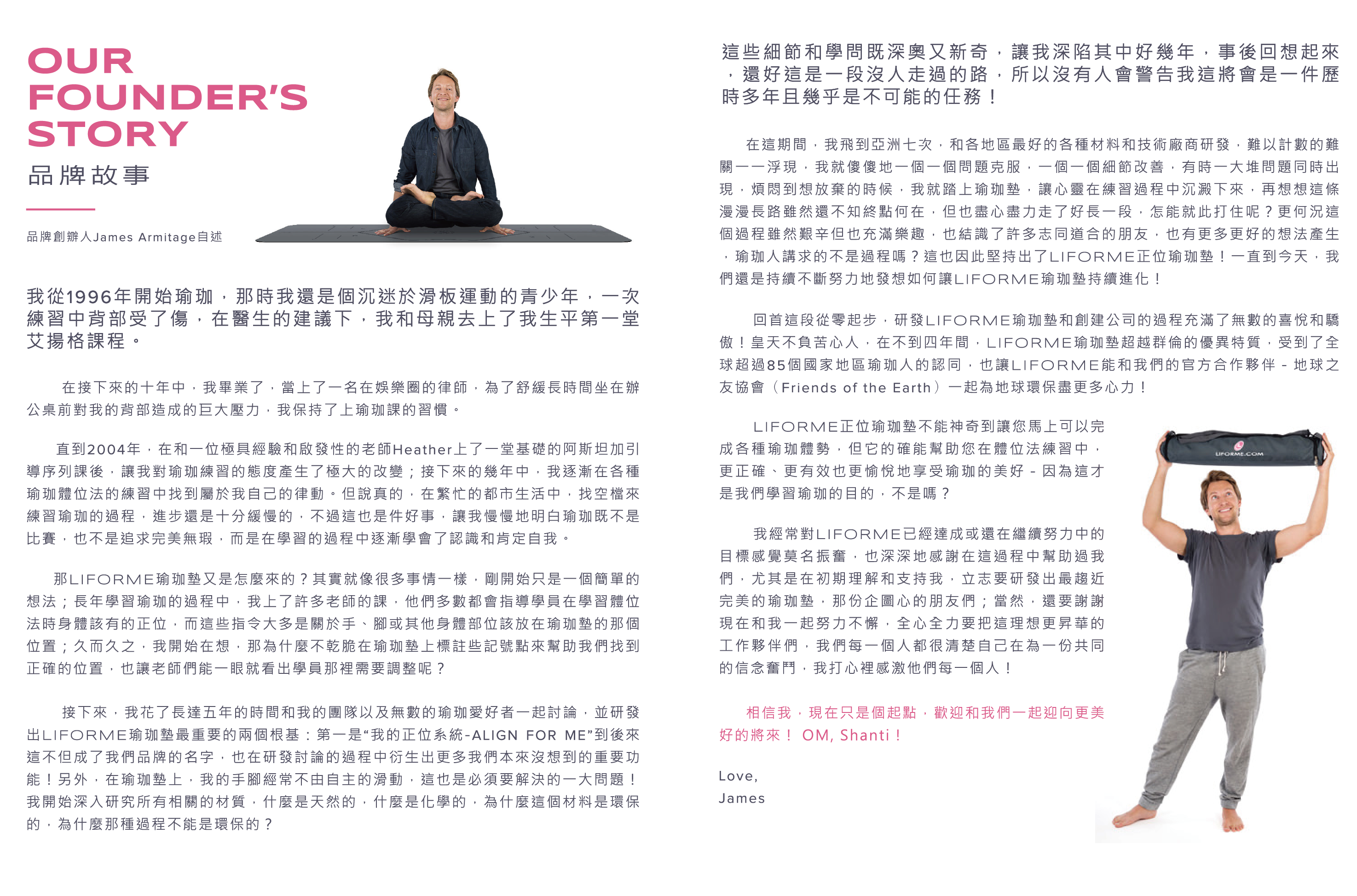 在 Liforme 英國總公司,每位員工都是瑜珈愛好者,在瑜伽的練習過程中,大家共同的體驗是,再也沒有比一張滿是汗水,又滑又臭的瑜珈墊更令人不舒服的事!這也是每位用過 Liforme 的貴賓為何會立即愛上它的主因之一!