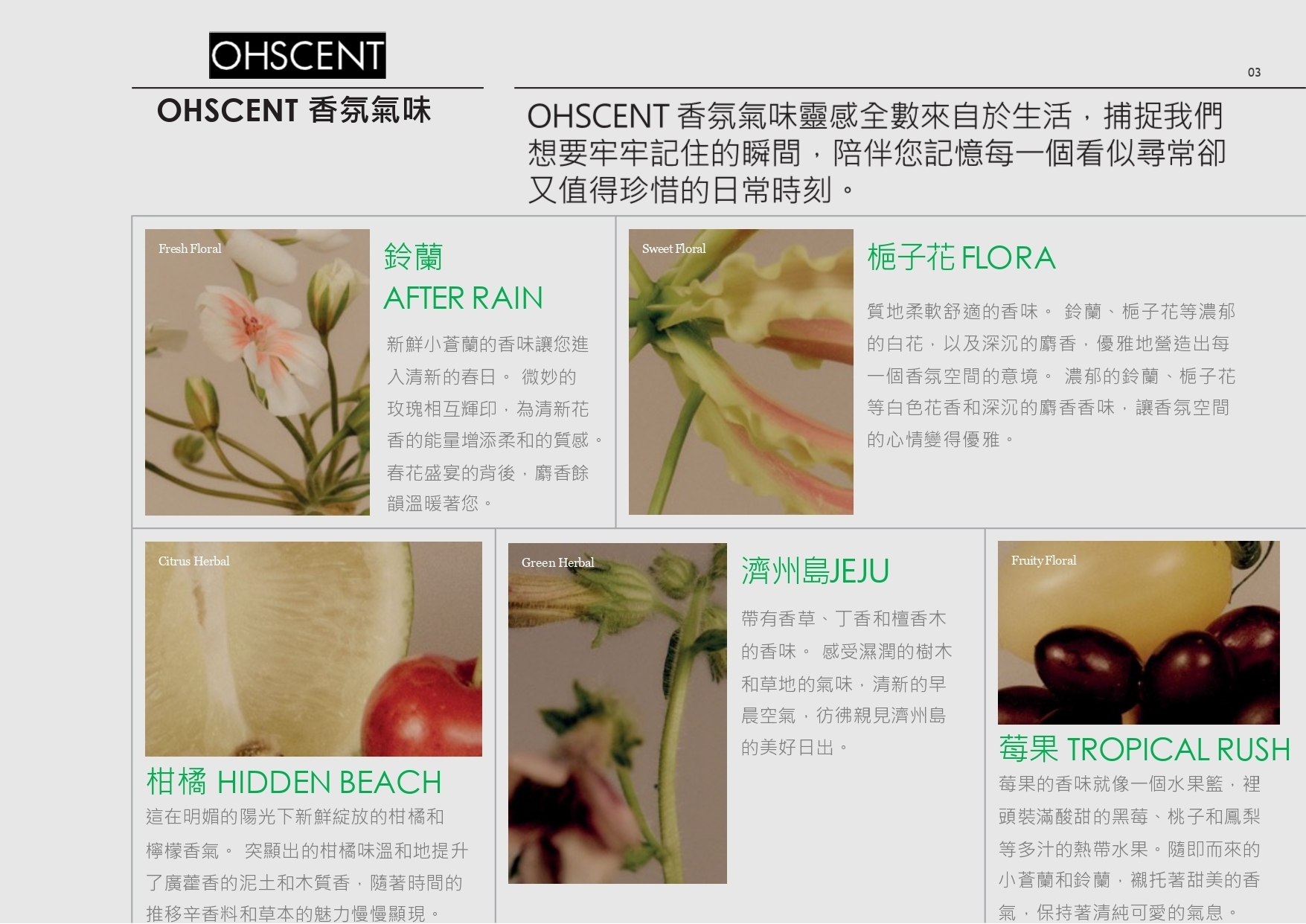 OHSCENT的所有產品包裝及設計都以最精簡、最純粹為標準,明亮且柔和的品牌形象讓顧客能夠單純且放鬆地享受香氛所帶來的愉悅。2020年OHSCENT正式登台,從今以後免代購,現在開始貼心送禮與寵愛自己又多了一個再完美不過的好選擇啦!