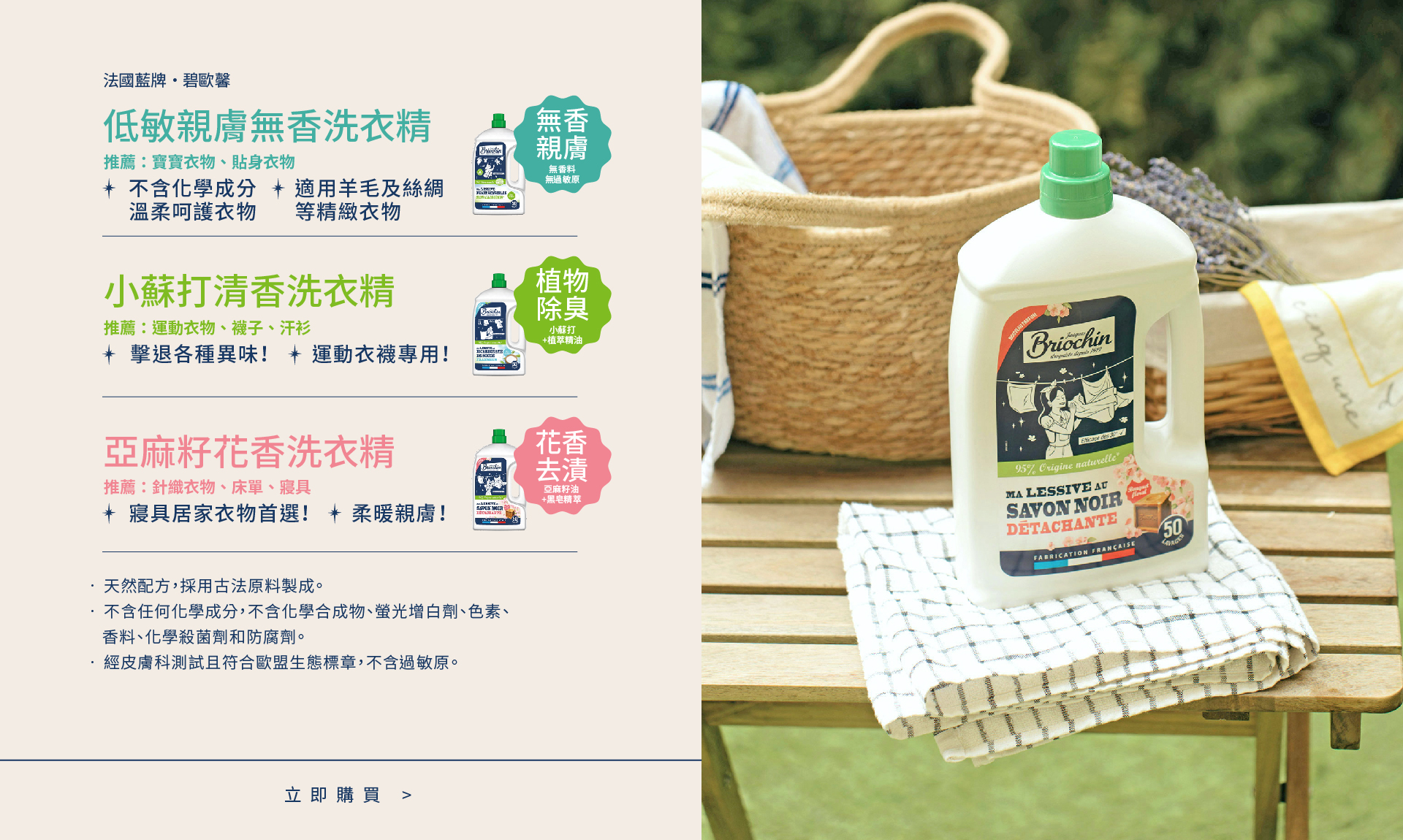 👉 低敏親膚無香洗衣精〖極簡溫和〗:寶寶與貼身衣物必備!不含化學香精,低敏無刺激,溫柔呵護肌膚與纖維,適用於羊毛、絲綢等精緻衣物。