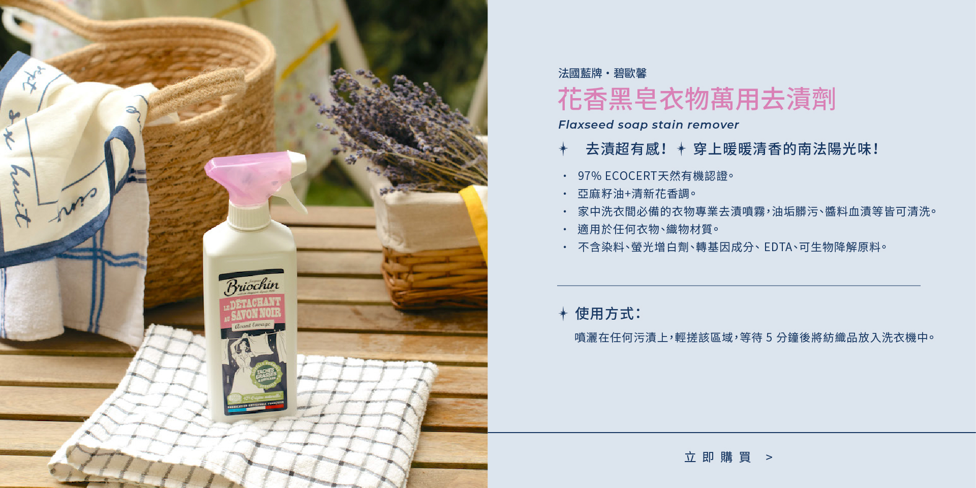 血漬、酒漬、醬料等髒污一噴輕搓即掉,散發怡人花香,適用於任何織品材質。
