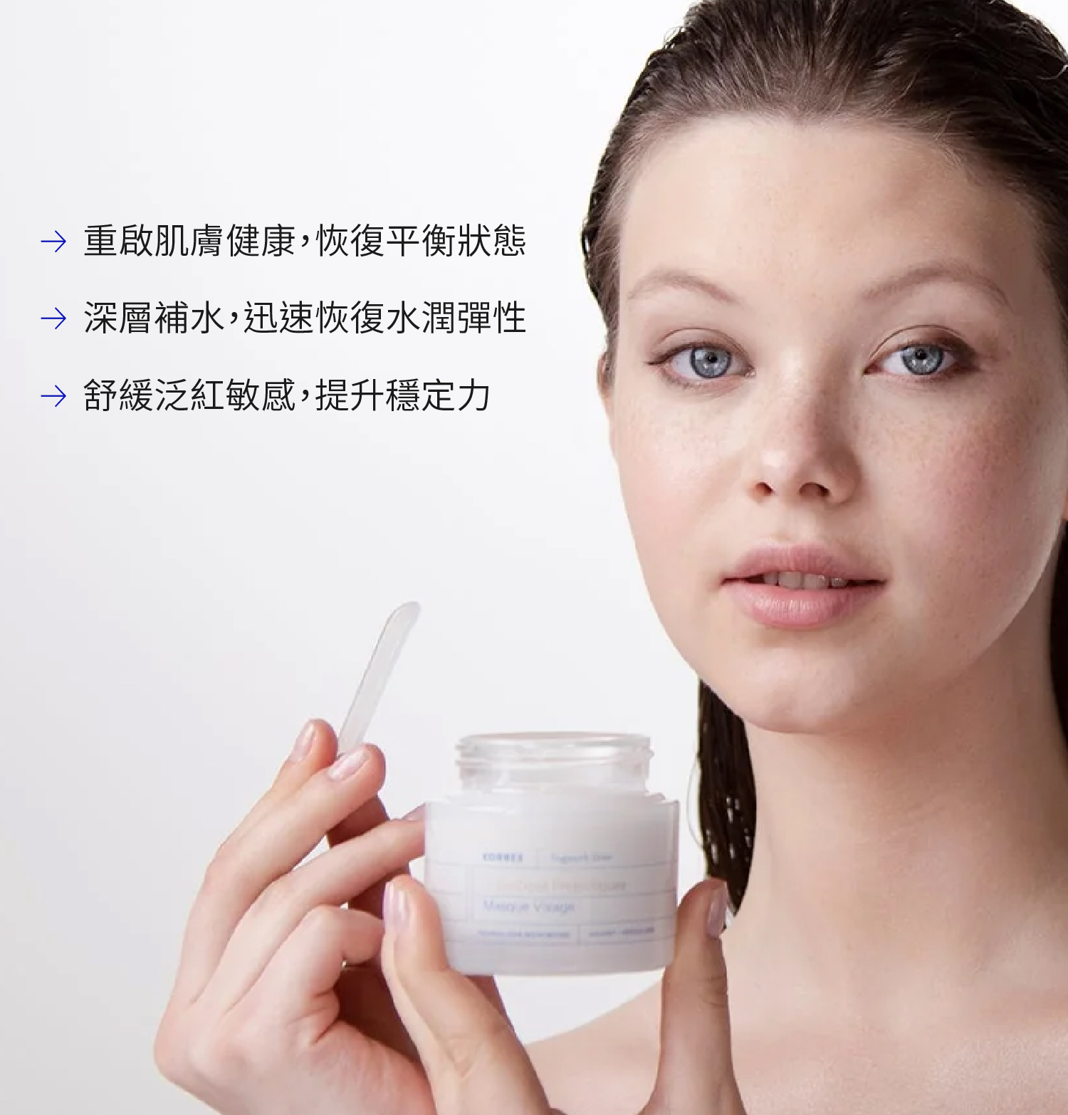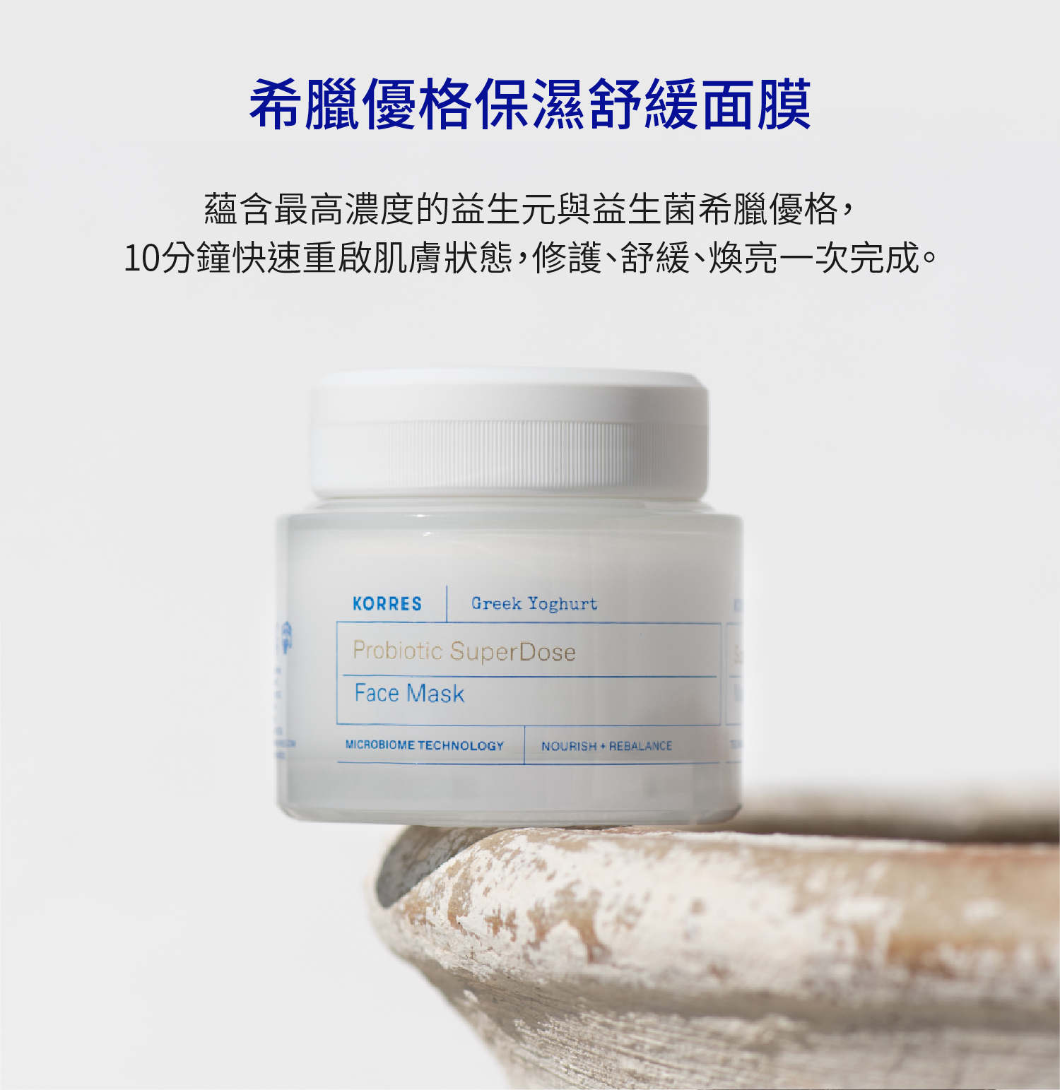 蘊含最高濃度的益生元與益生菌希臘優格,10分鐘快速重啟肌膚狀態,修護、舒緩、煥亮一次完成。