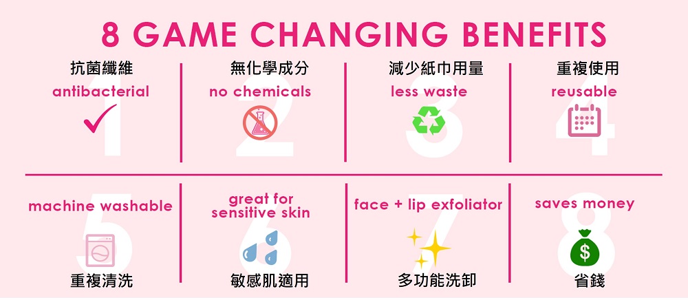 每條神奇卸妝巾可使用3-5年,相當於減少3,600張紙巾的使用量,為地球永續邁向新的一步!