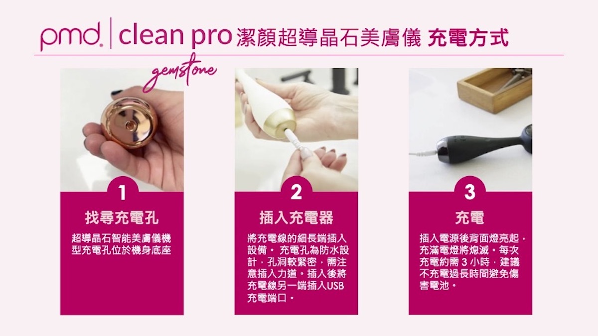 注意事項:充電線可適用於PMD潔顏超導晶石美膚儀、PMD智能潔膚身體按摩儀