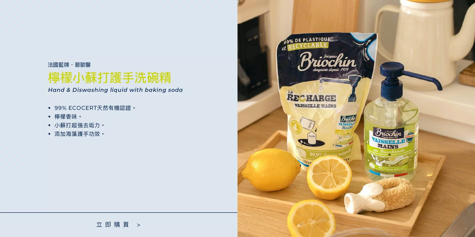 👉 檸檬小蘇打洗碗精:含小蘇打、檸檬精油、海藻成分,超強除油垢、洗淨力佳,適用於陶瓷、餐盤碗筷、鍋具,無需浸泡、直接洗就乾淨。