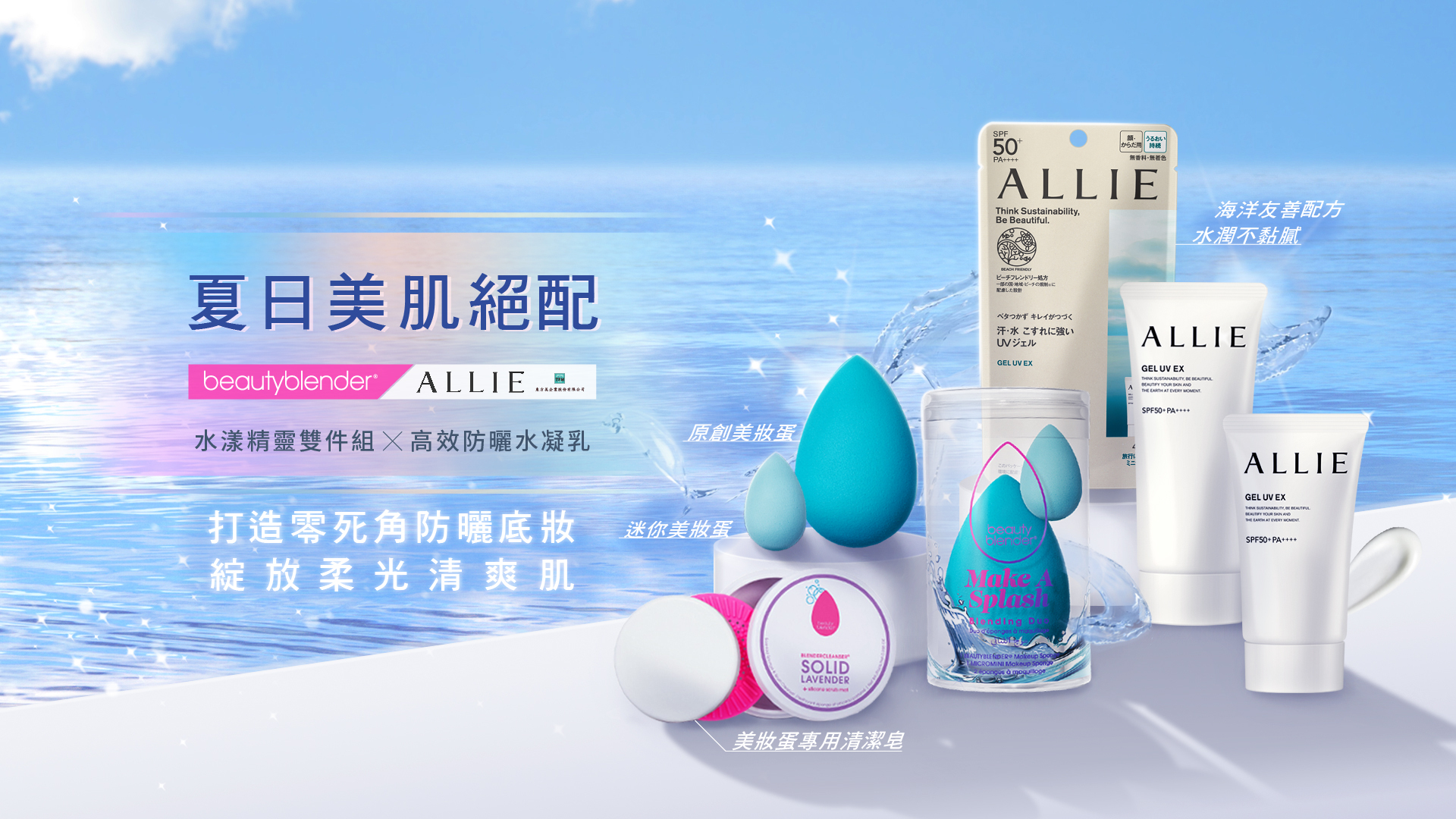 此次beautyblender X ALLIE聯手推出兩款神級組合,分別是『水漾防曬限量組』和『水漾清潔限量組』,簡單三步驟,輕鬆打造最服貼無瑕漂亮夏日妝容!