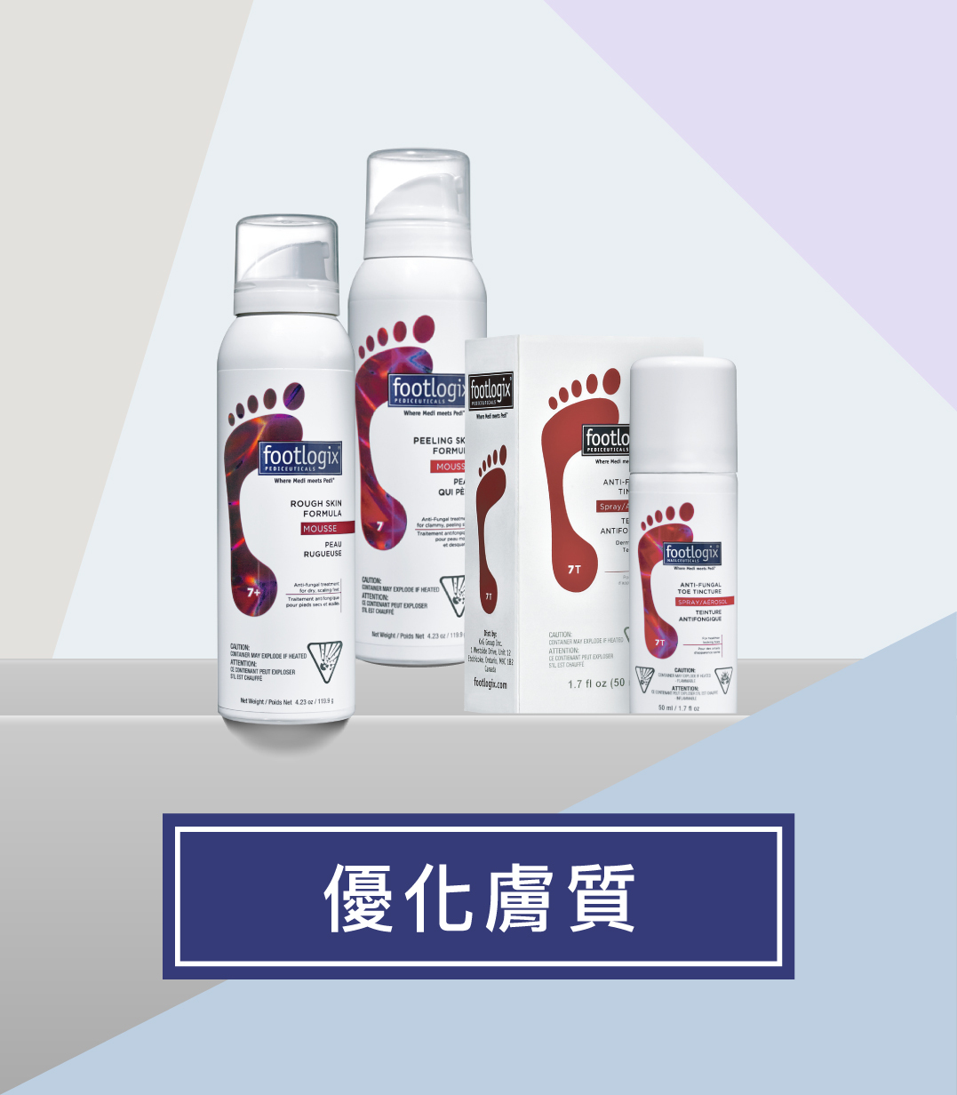 從乾燥現象到粗糙脫皮乾裂乃至指甲等相關問題,Footlogix美妝品皆能迅速有效改善。